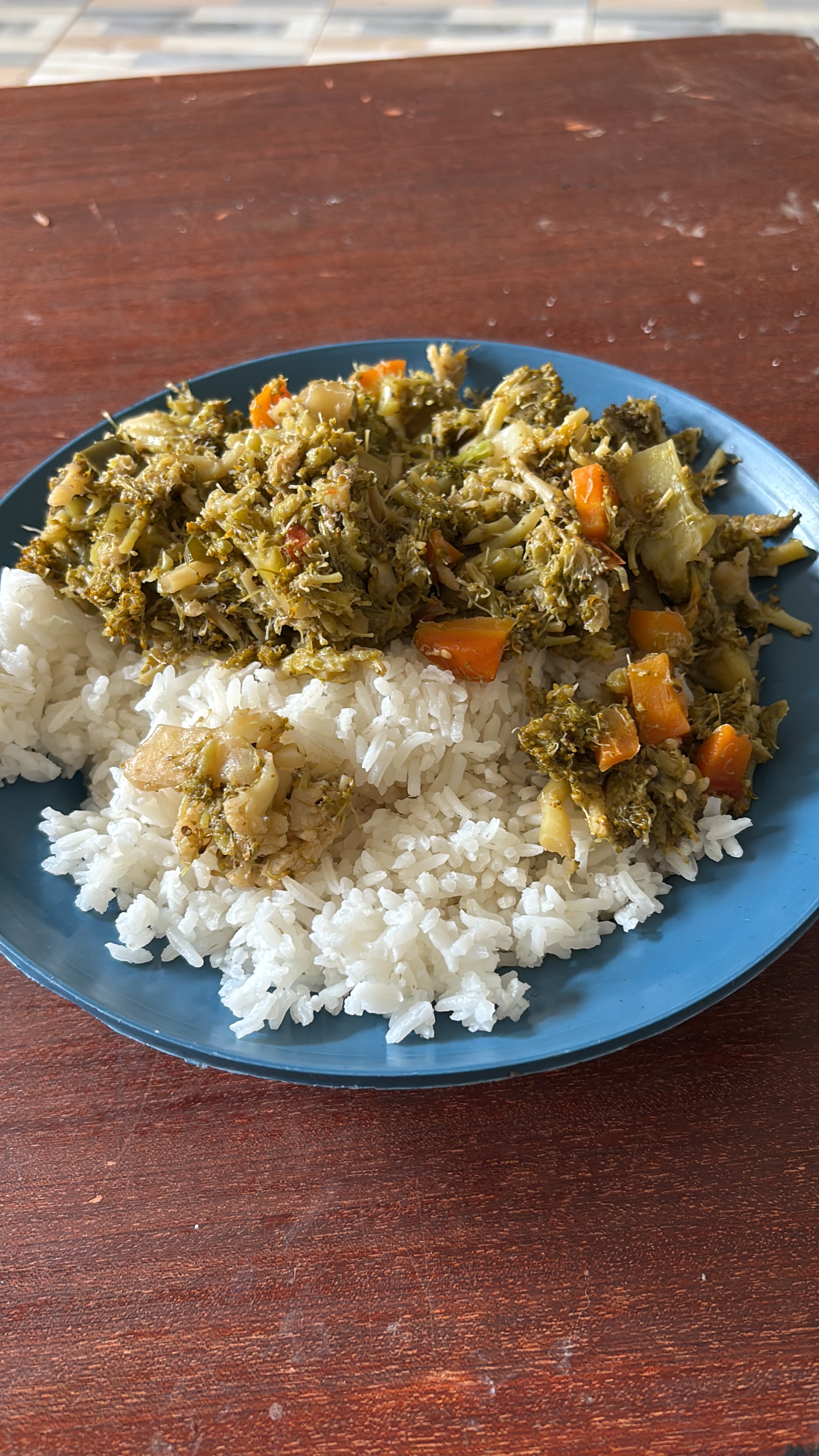 Auf dem letzten Bild ist eine typische Mittagsmahlzeit zu sehen. Ganz viel Gemüse, heute Brokkoli und ganz ganz viel Reis. Man muss bedenken, dass wir noch kleine Portionen bekommen, also die Kinder kriegen Riesen Portionen, die aber immer fleißig aufgegessen werden. Naja irgendwo muss ja die Energie zum Toben herkommen.