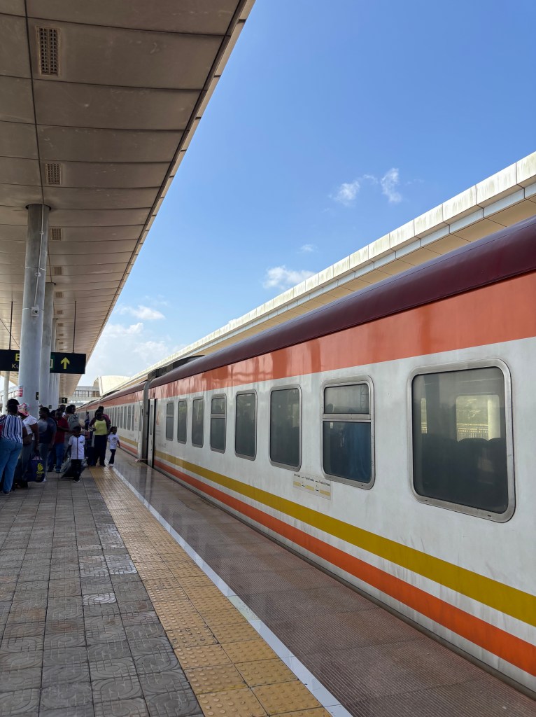 Der Zug von Nairobi fuhr zwar erst um acht Uhr los, abgeholt wurden wir aber schon um fünf Uhr morgens. Die Fahrt zum Bahnhof dauerte etwa eine Stunde. Dort angekommen begannen direkt die Sicherheitskontrollen. Wenn ich daran denke, dass ich zuhause meistens nur wenige Minuten vor Abfahrt am Bahnhof bin, merkt man schnell, dass das hier ganz anders läuft. Wir mussten ungelogen durch vier oder fünf Kontrollen. Mal wurden wir selbst gescannt, dann unser Gepäck und auch Drogenspürhunde waren im Einsatz. Die Kontrollen waren tatsächlich noch strenger als an Flughäfen. Zum Glück kamen wir und unser Gepäck problemlos durch und pünktlich um acht Uhr fuhr der Zug ab.